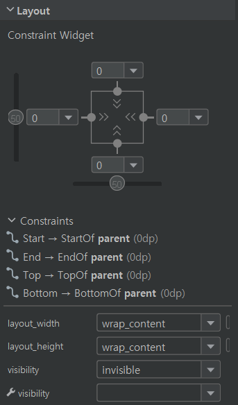 visibility를 invisible 또는 gone으로 설정해서 처음에는 보이지 않도록 한다.