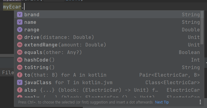 이 외에도 모든 클래스에서는 toString, hashCode, equals 등과 같은 함수를 항상 사용할 수 있다. 이는, Any클래스는 모든 객체의 슈퍼클래스이기 때문이다.
