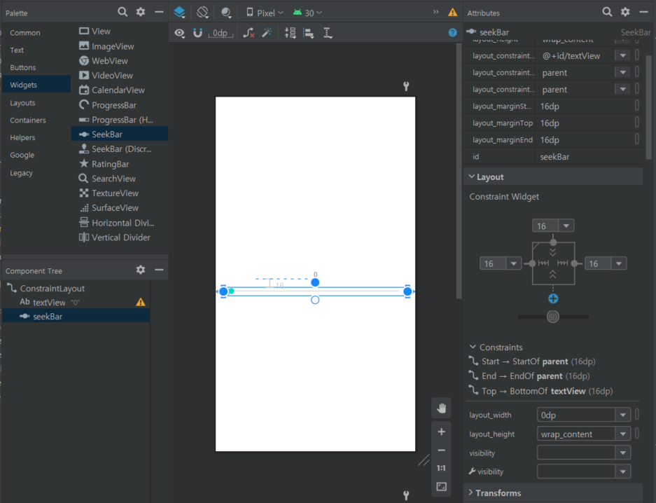 textView와 seekBar를 한 개씩 배치시킨 layout