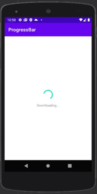 에뮬레이터를 실행하면 입력한 코드대로 프로그래스바가 3초간 돌다 사라지는 것을 확인할 수 있습니다.