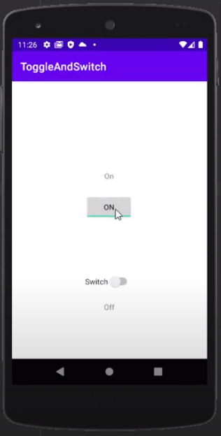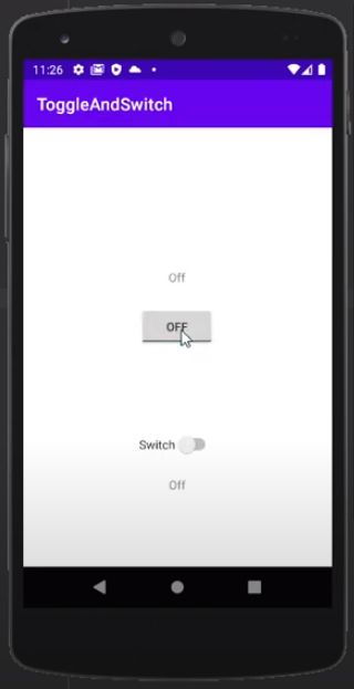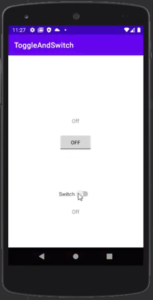 토글과 스위치 버튼은 UI의 모양만 다를 뿐 동일한 기능을 수행합니다. 두 버튼을 동시에 xml 파일에 생성해 동작해보겠습니다.