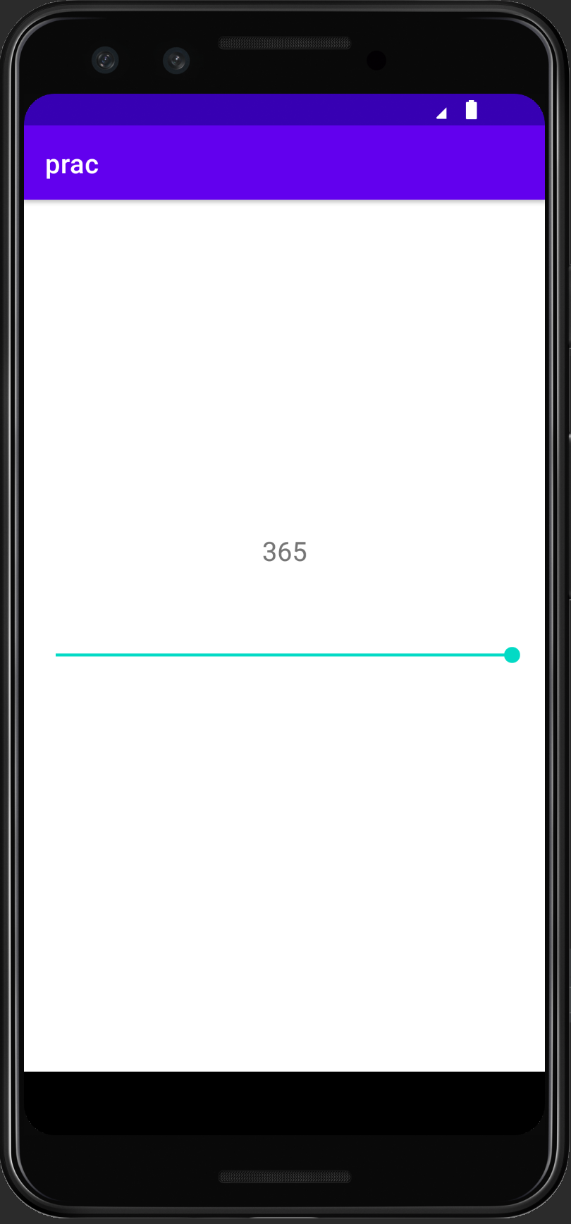 미지정되어있는 max의 값을 새로이 바꾸고 다시 에뮬레이터를 실행해보면 변경된 시크바의 최댓값을 확인할 수 있습니다.