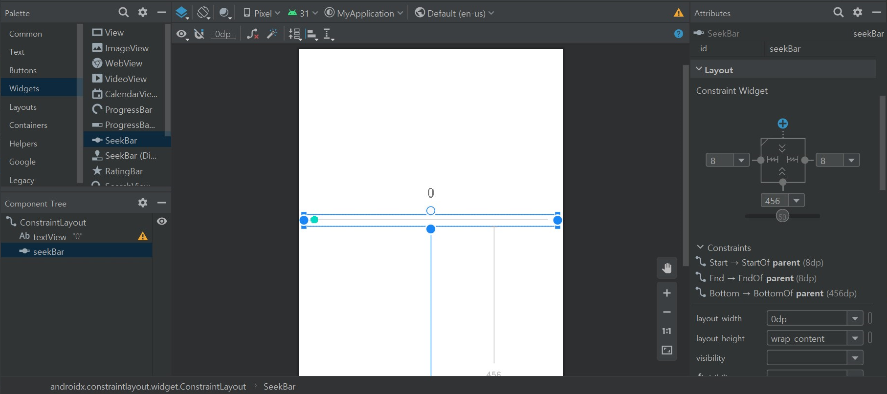 바뀌는 숫자가 보여질 text와 seekbar를 가져와서 배치해준다.