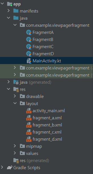 - 표현하고 싶은 페이지 수 만큼(현재는 4개) 프래그먼트 복사, 붙여넣기