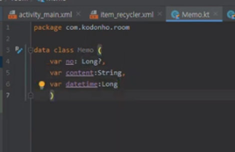 메모클래스(RoomMemo로 클래스명 바꿔줌)