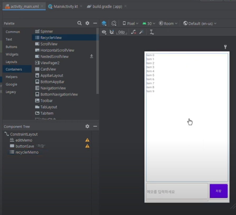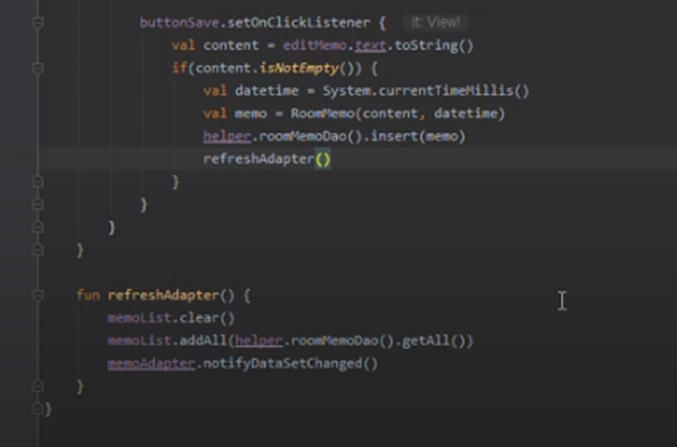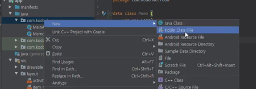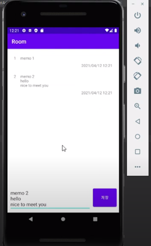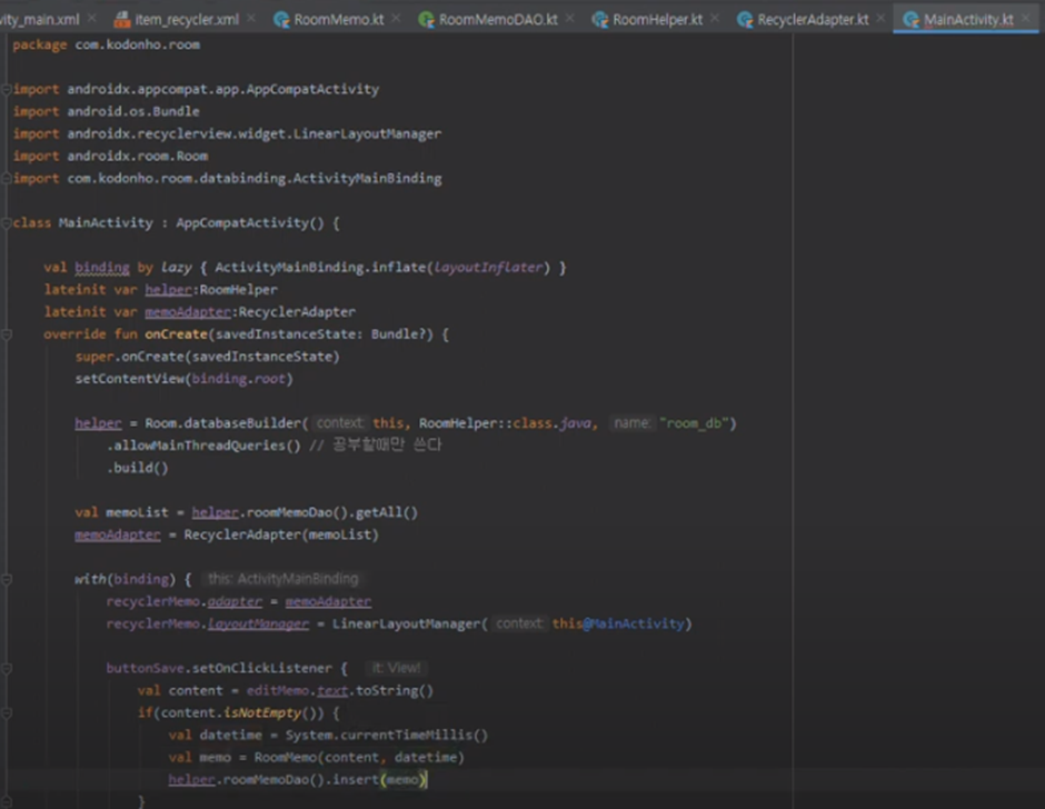 해당 진도에서는 Room DB사용 메모입력 - 저장 기능 구현.