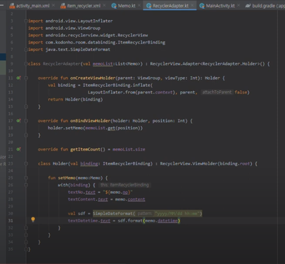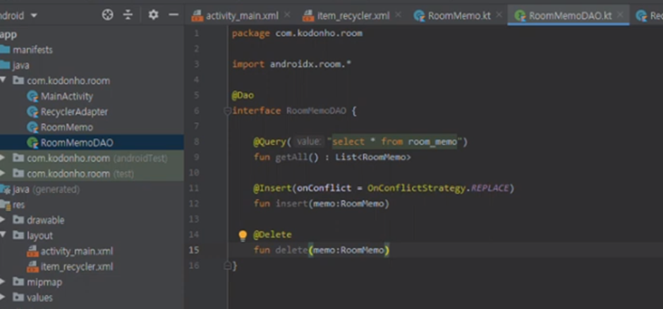 3. MainActivity, DAO, RecyclerAdapter